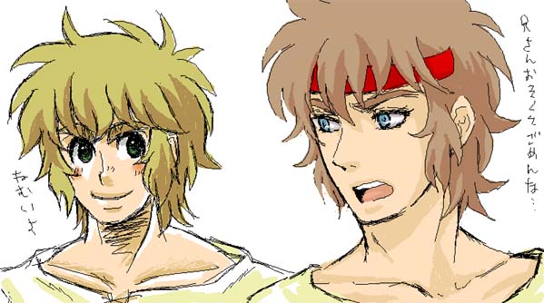 て事で、もさんはあいおりあの双子?の弟のあいおろす(だっけ??)を。私があいおりあ。髪の毛とバンダナは下書きしてもらった…髪の毛難しいんだもん。