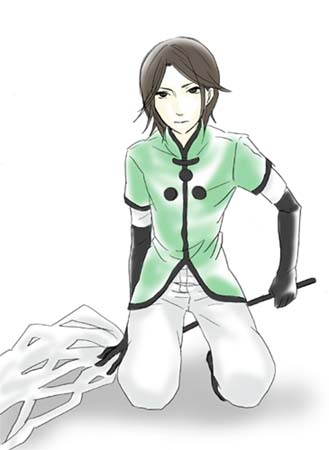 この人って、甲冑(て言うのかなぁ??腕のあれ)とかつけてた方が絵としてさまになるような気がする…自分で描いた時は、そう思う。